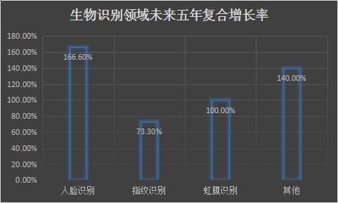 圖2 生物識(shí)別領(lǐng)域未來五年復(fù)合增長率