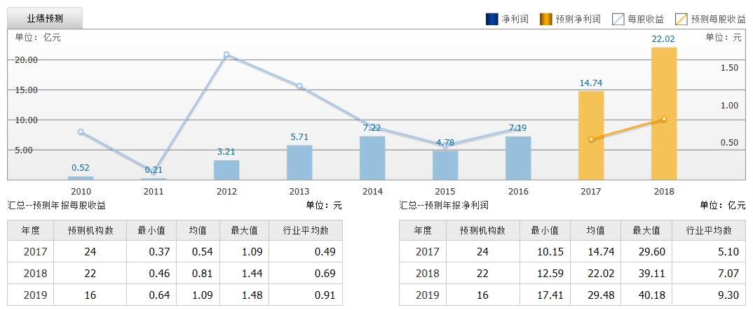 截至2017年8月3日,6個(gè)月以內(nèi)共有 24 家機(jī)構(gòu)對(duì)歐菲光的2017年度業(yè)績(jī)作出預(yù)測(cè)。預(yù)測(cè)2017年每股收益 0.54 元,較去年同比下降 21.65%;預(yù)測(cè)2017年凈利潤 14.74 億元,較去年同比增長 105.09% 。